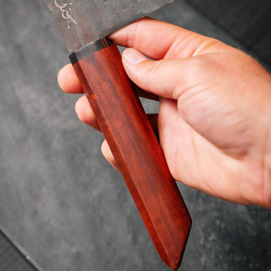 A broad, powerful 20 cm vegetable cleaver built for big chores in the kitchen. It’s designed to handle chunky root veg like pumpkin, squash, kumara, and more. Crush garlic cloves with ease, and dice herbs or onions in a single comfortable motion.