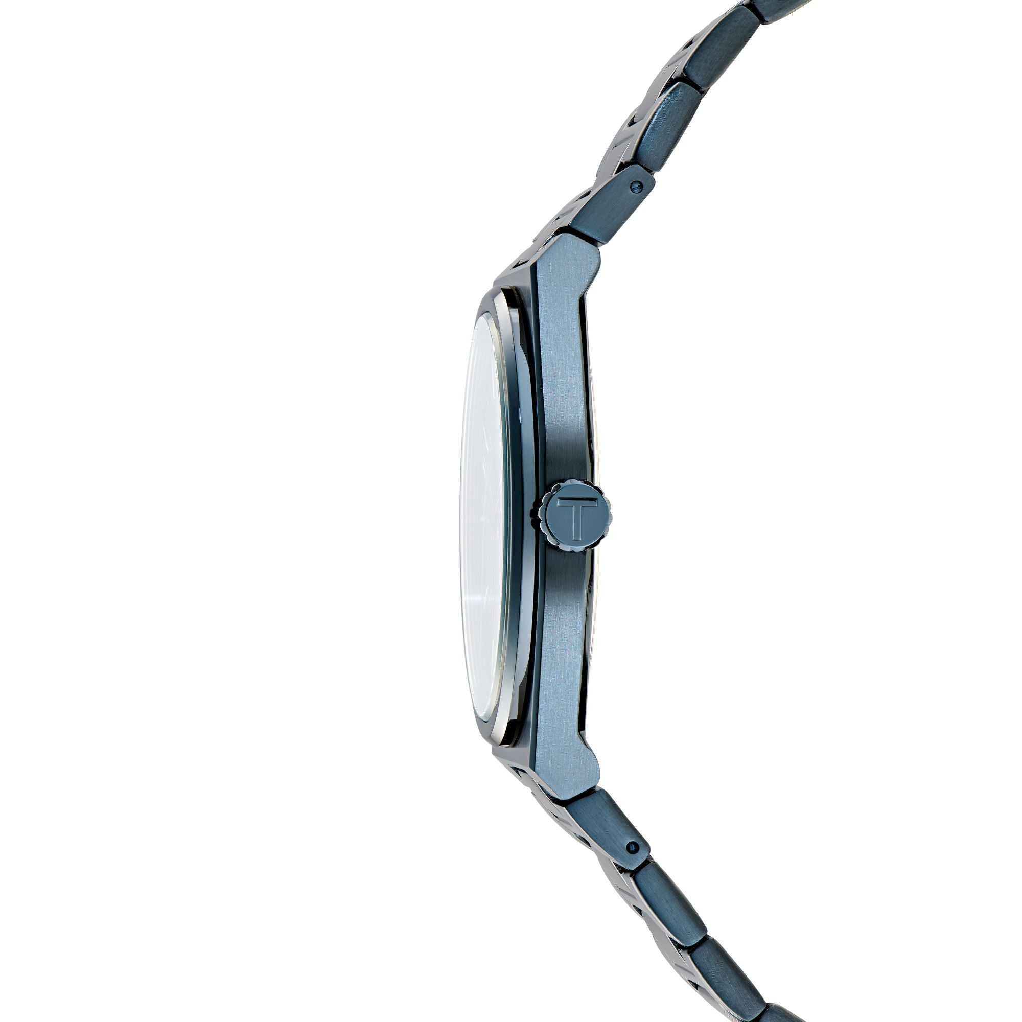 Stainless steel case and bracelet with IP blue finish