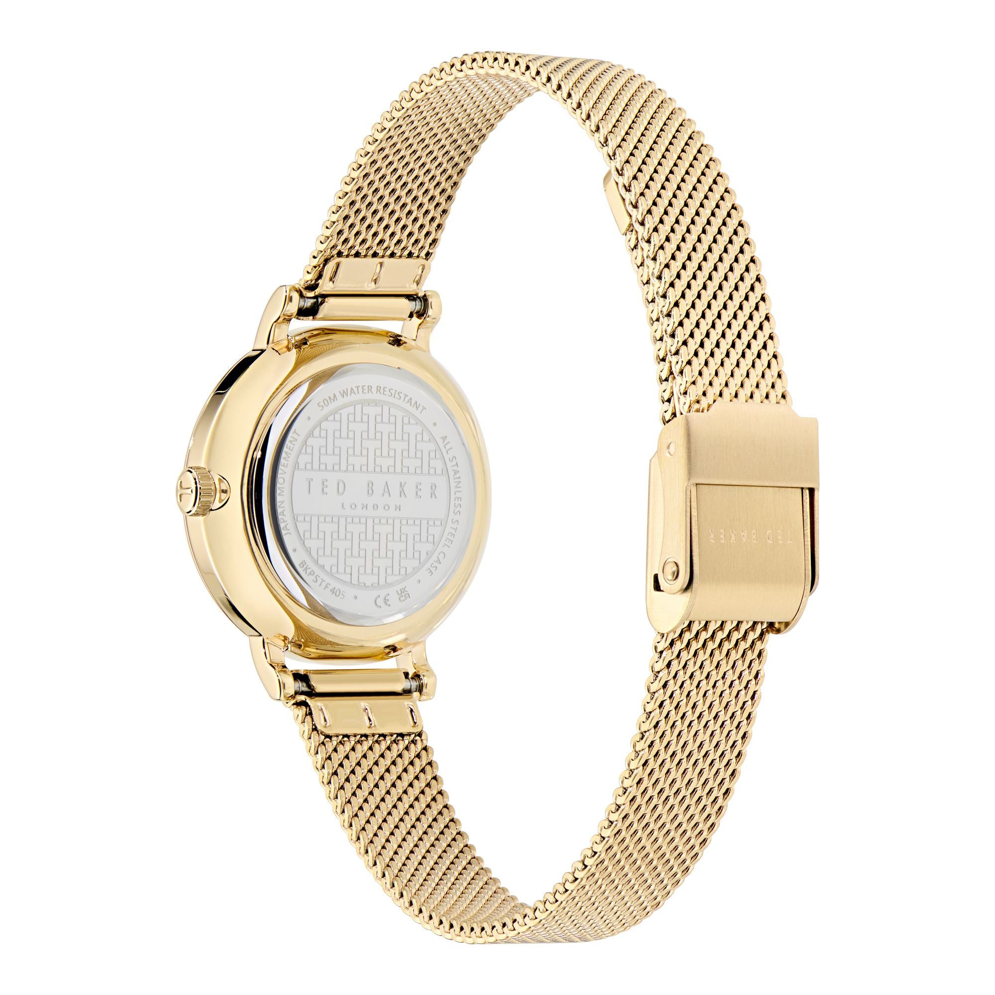 Elegant and timeless, the Ted Baker Staciie Watch in gold-tone is designed to feel as beautiful as your favourite piece of jewellery. Featuring a polished gold-tone case and matching mesh bracelet, this refined timepiece adds warmth and sophistication to your everyday style.