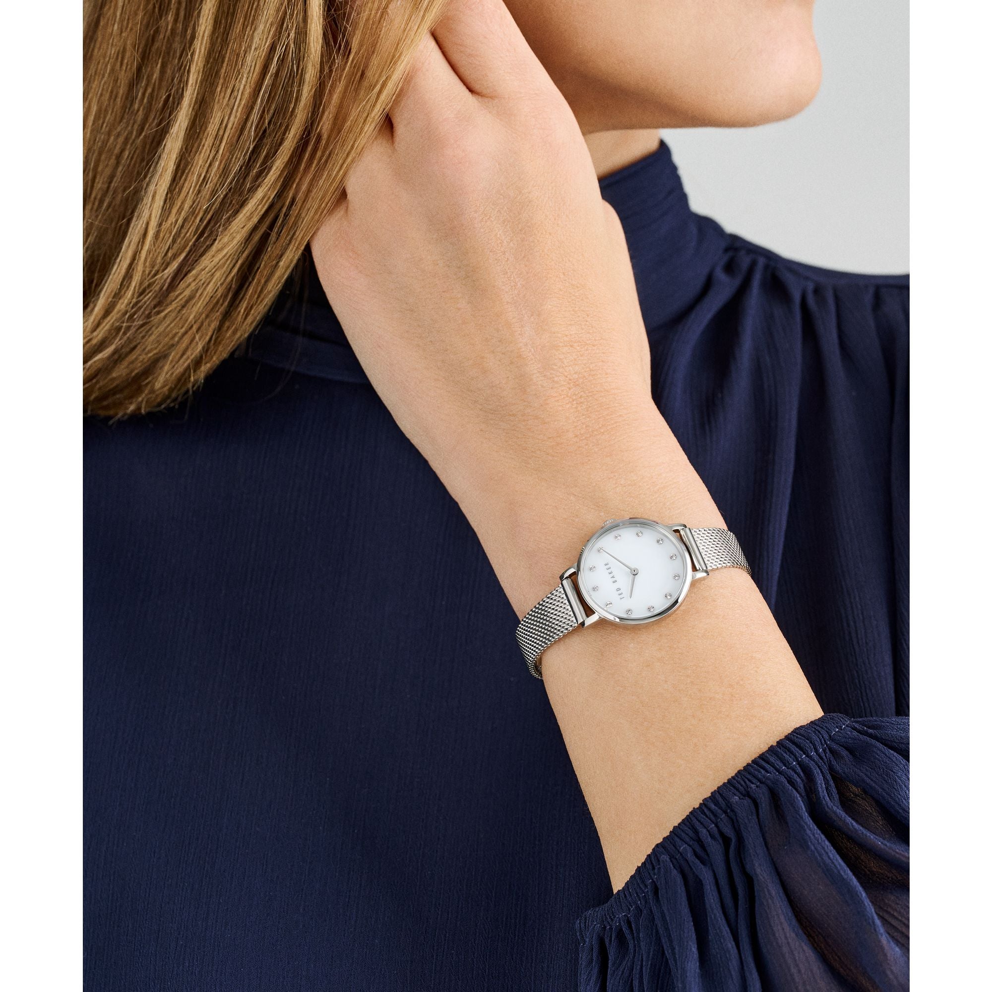 Refined, timeless, and effortlessly elegant, the Ted Baker Staciie Watch in silver-tone is designed to bring a polished finishing touch to your everyday style. Featuring a sleek stainless steel case paired with a delicate mesh bracelet, this piece feels more like jewellery than a traditional watch.