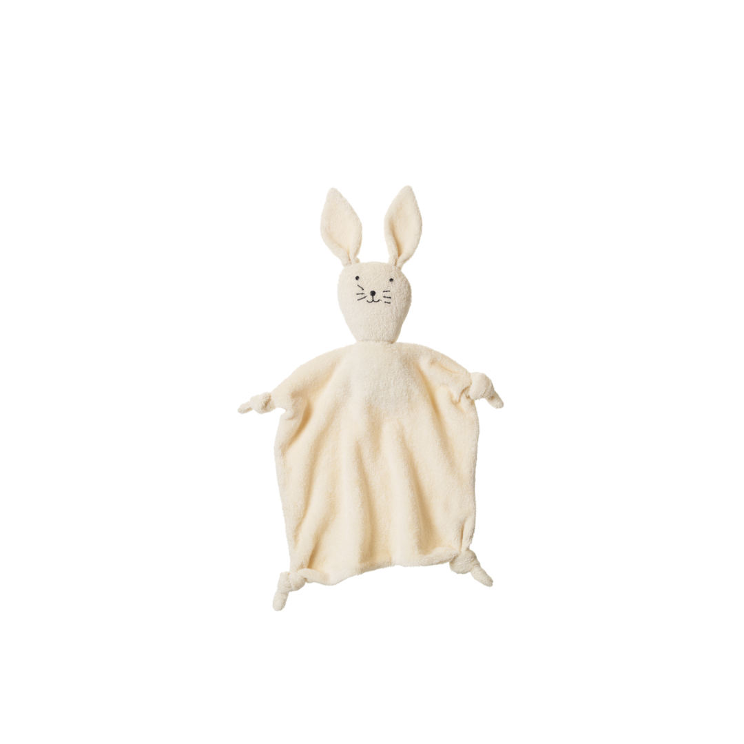 Meet Casey Cuddle Bunny, made from snuggly organic cotton terry and filled with organic cotton wadding. Our cuddle bunnies are designed to create comfort and calm, and can act as a sleep aid for little one. These cute new cuddle friends are perfect for young ones, knotted feet make it easy to grasp and are also great for chewing on when baby is teething. Features hand embroidered face detailing which makes each toy a little different and very special, and space for little one's name on the tag so their cuddle bunny remains theirs for as long as they need.