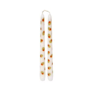 Our citrus and strawberry themed candles have been such a hit with you, we’ve added some new tasty additions. This two pack of candles come in a sleek, tapered shape and are decorated throughout with chilli stuffed olives. Just the thing for Mediterranean themed lunches.