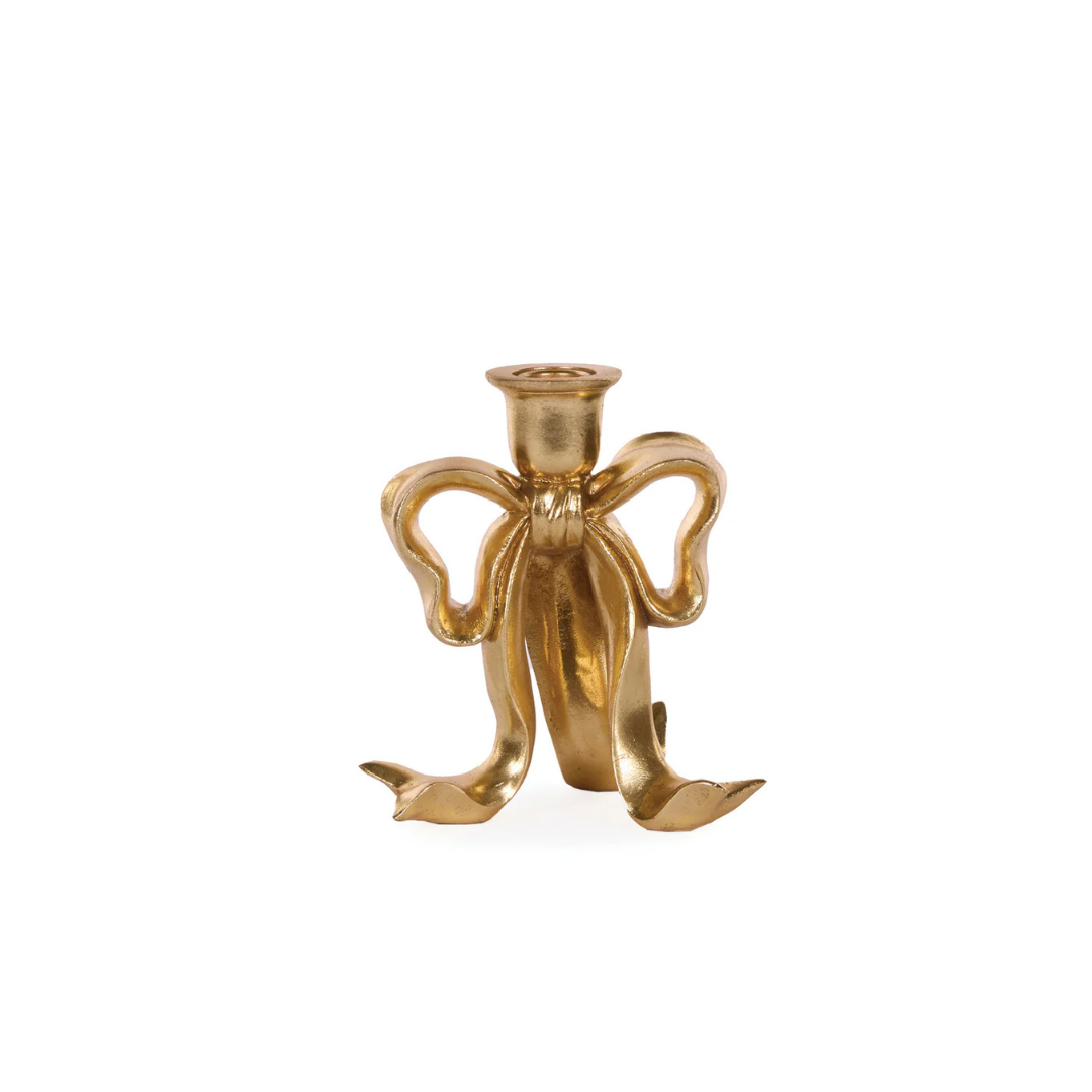17 CM GILDED BOW CANDLE HOLDER