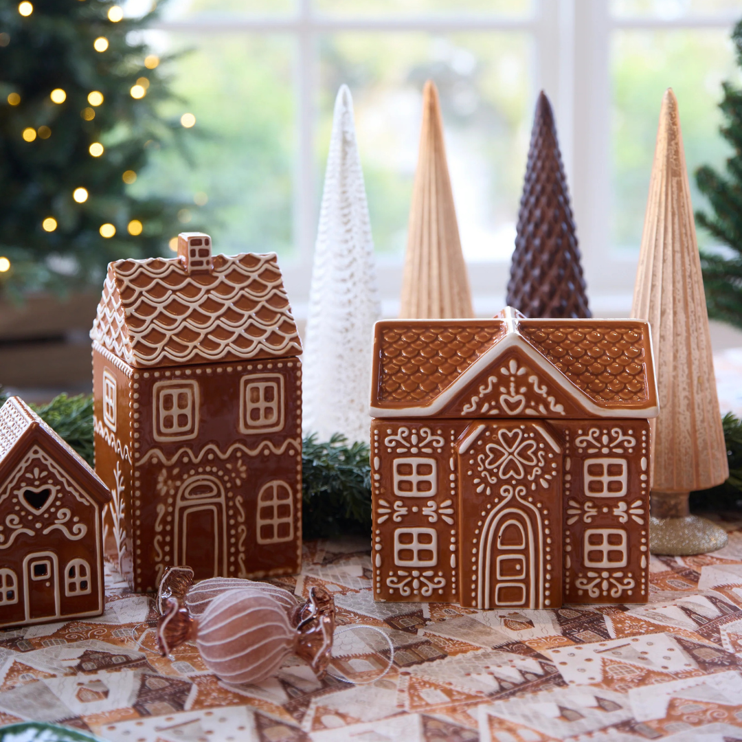 This festive showpiece is straight out of a Christmas dream - a glazed ceramic gingerbread mansion, complete with intricate white icing details and plenty of charm. Whether you use it to store treats, trinkets, or just let it shine as a centrepiece, it’s guaranteed to bring cosy, cookie-house magic to your home.