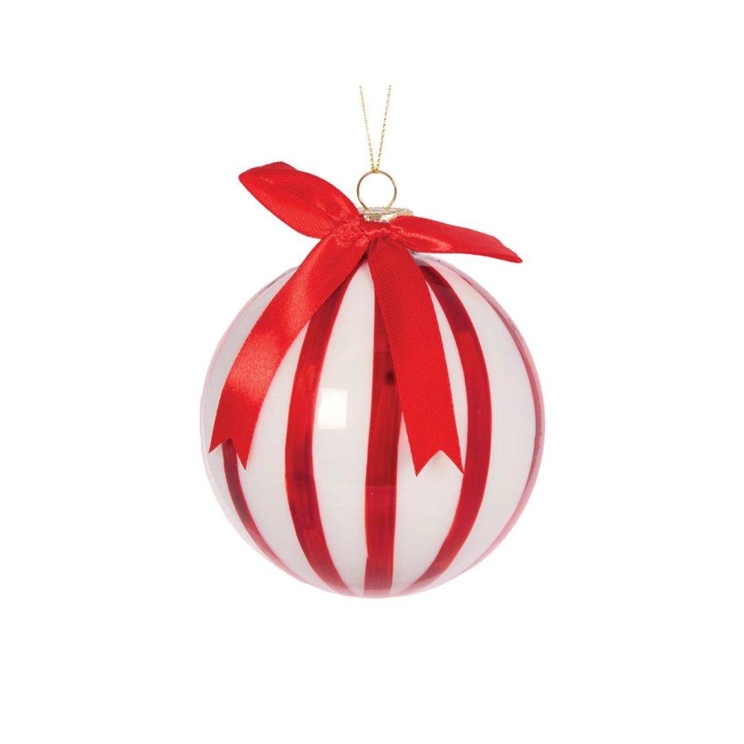 This candy-cane-inspired bauble is Christmas perfection - with glossy red and white stripes and a satin bow to top it off. A playful nod to peppermint candy and vintage holiday charm, it’s the kind of ornament that makes your tree feel instantly merry (and a little bit fabulous).