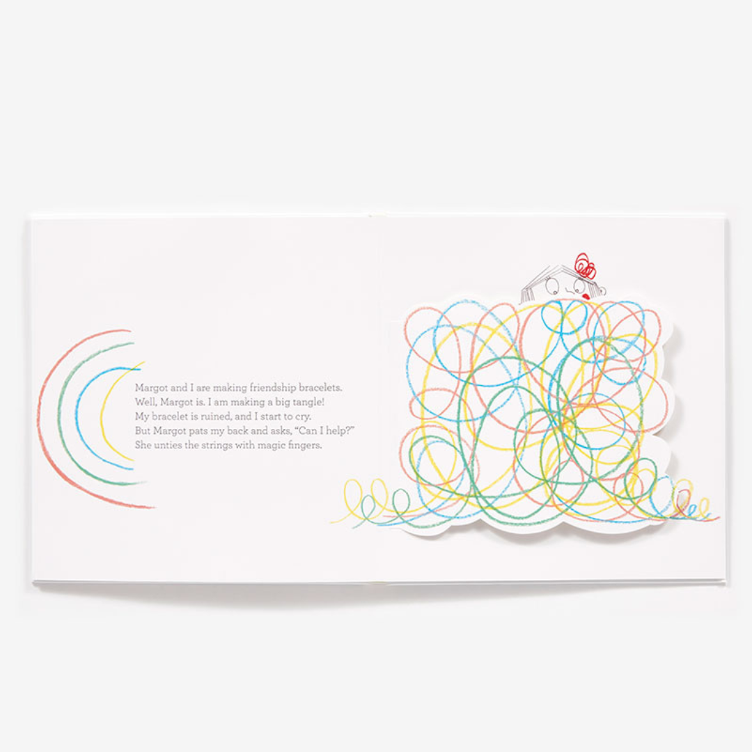 There are many types of gifts. You can give a big, shiny, wrapped gift on Christmas morning, but you can also give the gifts of your help or your time. You can bake a cake for your parents or share what you learned in school with your little sister. You can help a friend unravel a knotty bracelet or smile at a stranger who looks sad.