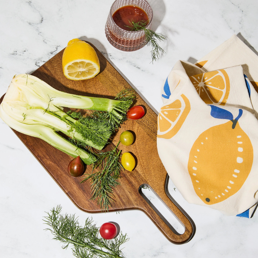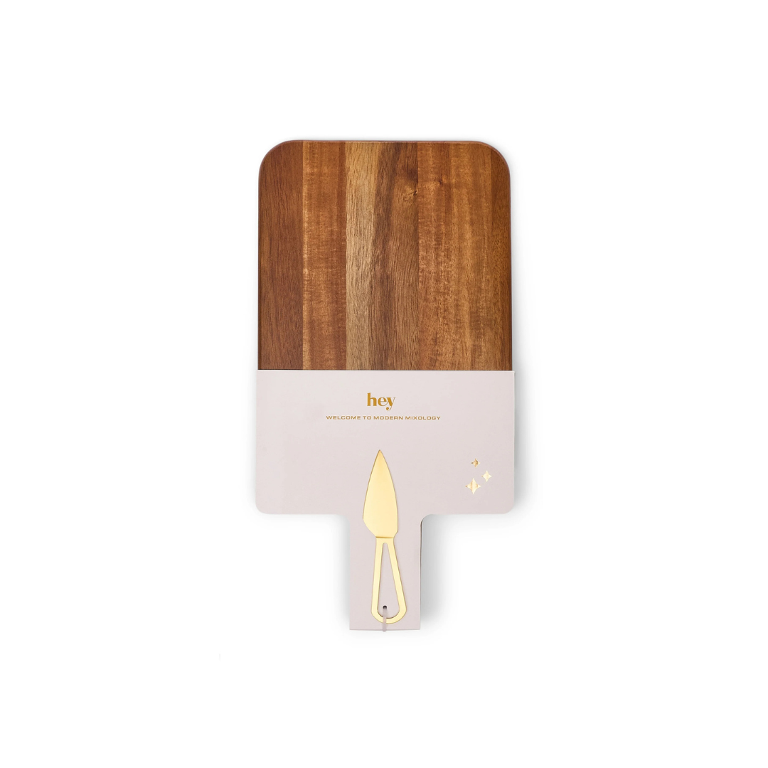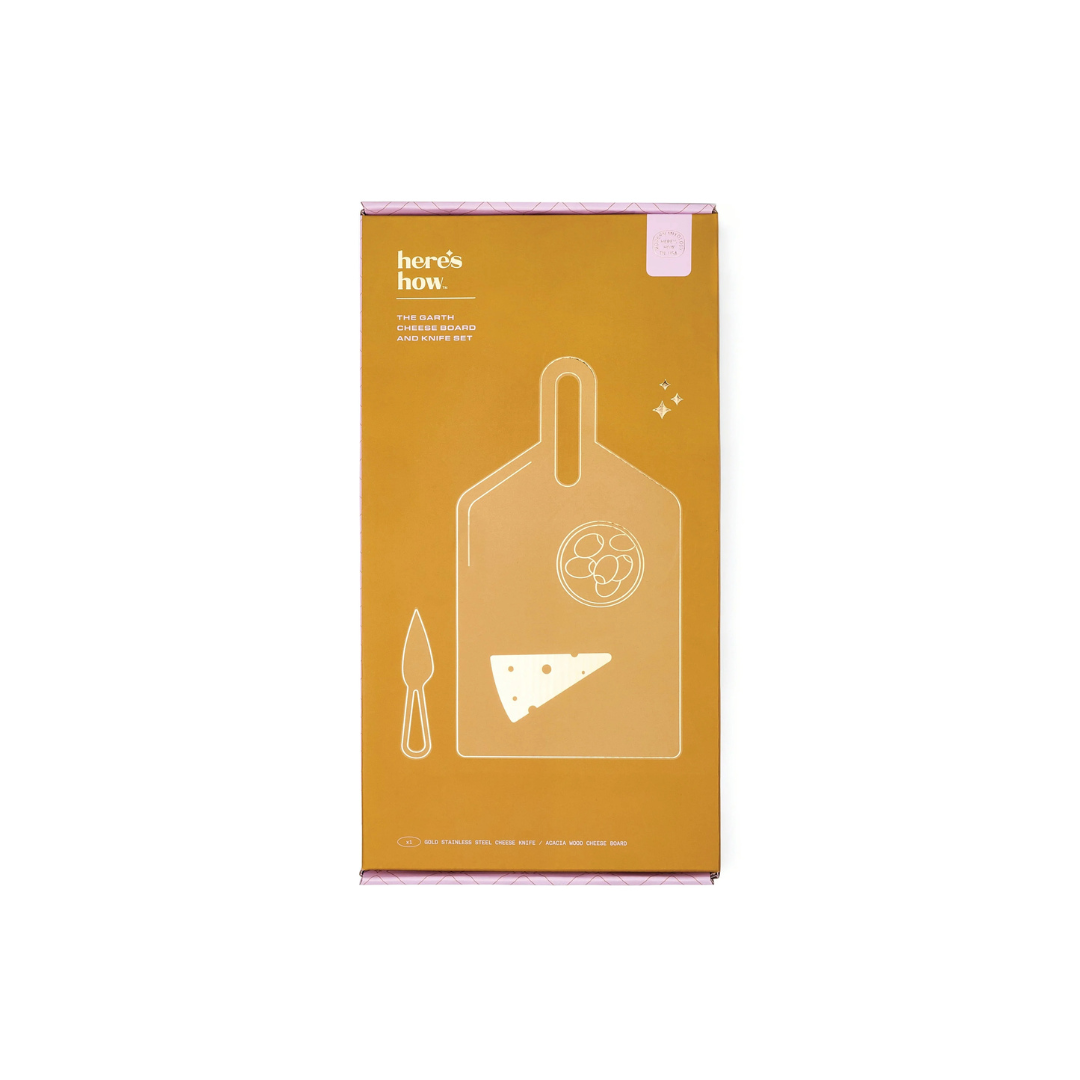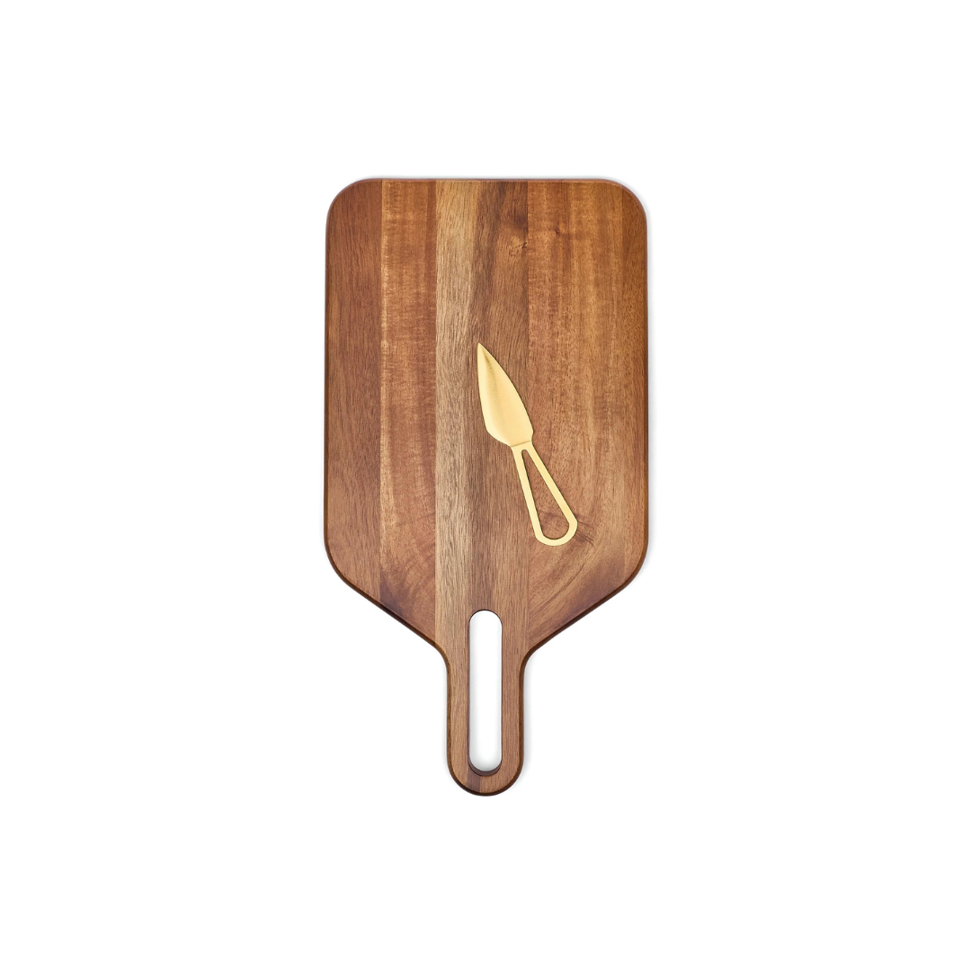 The Garth Cheese Board and Knife Set combines the natural beauty of acacia wood with the luxurious shine of gold, making it the perfect centerpiece for any occasion.