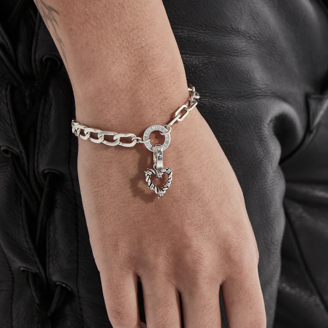The Barbed Heart Charm blends sentiment with edge, cast in solid sterling silver for a bold, sculptural statement. With a spring-loaded hinge and adjustable clasp, it’s designed for effortless styling - move it, change it, make it entirely yours. Every charm tells a story. This one tells yours.
