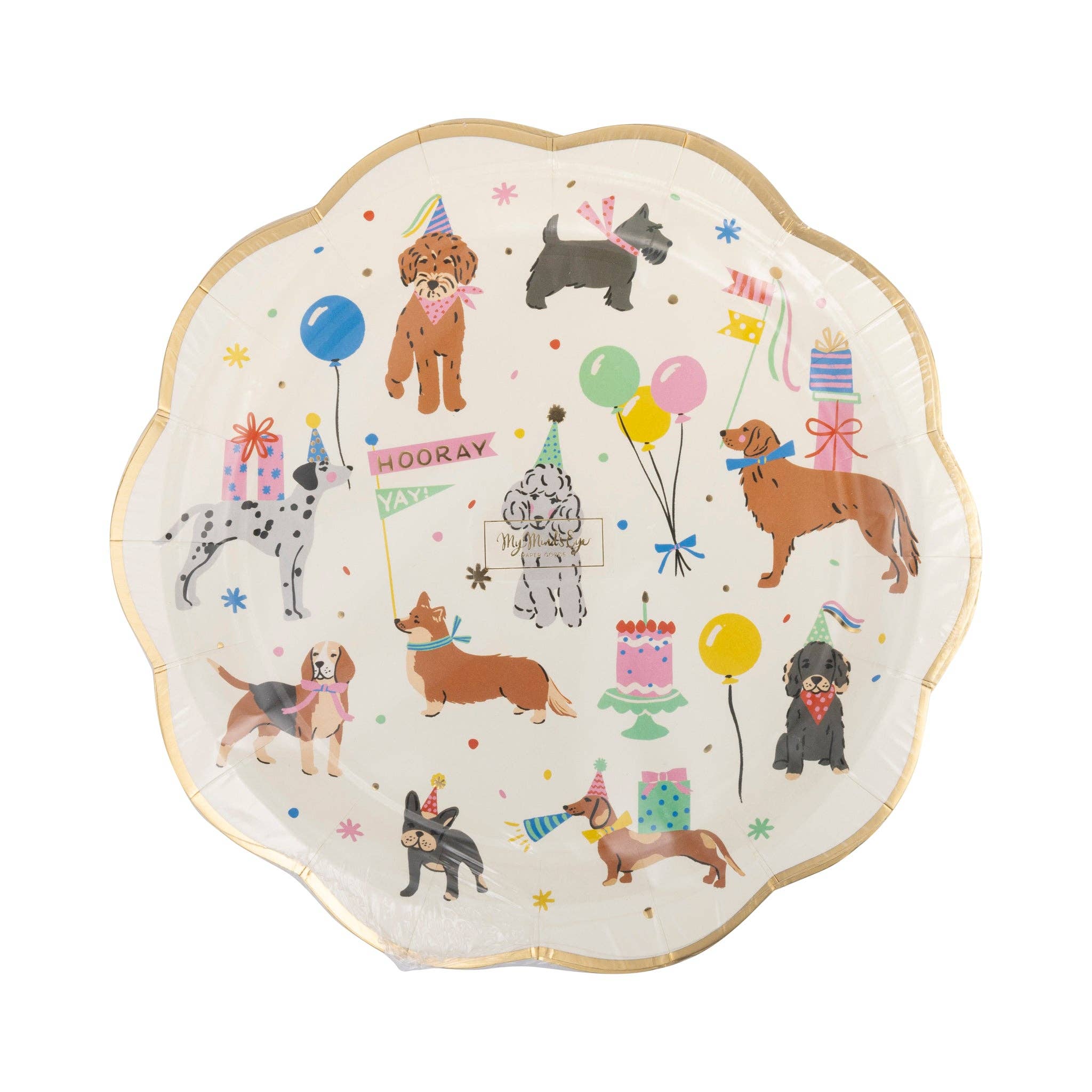 Add some "paw-some" fun to your next party with our Dog Party Plate! Featuring adorable dog icons, these paper plates are perfect for any celebration. "Fetch" as many as you need for a "bark-tastic" time! • includes 8 shaped paper plates • 9 x 9 inches • gold foil 3 sets of plates make 1 wholesale pack.