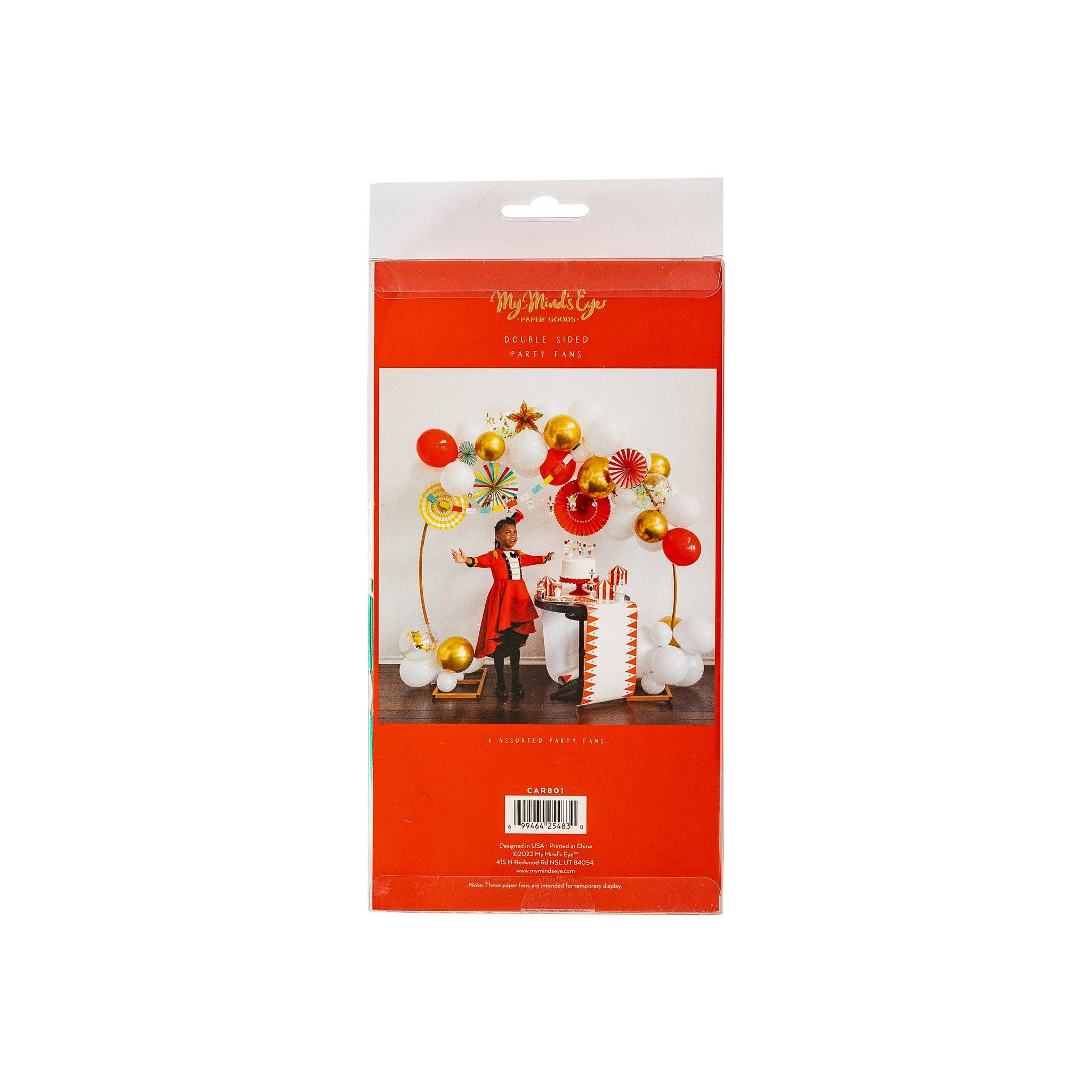 Bring the charm of the big top to your next celebration with this festive party fan set. Designed with bright carnival inspired colors and gold foil accents, this set includes five round fans and a star shaped fan. This party fan set creates the perfect backdrop for carnival themed birthday parties. 3 sets of fans make 1 wholesale pack. • Includes 6 paper fans • 1 - 17", 2 -14", 2 - 11" and 1 - 8" fan • double-sided • gold foil accents