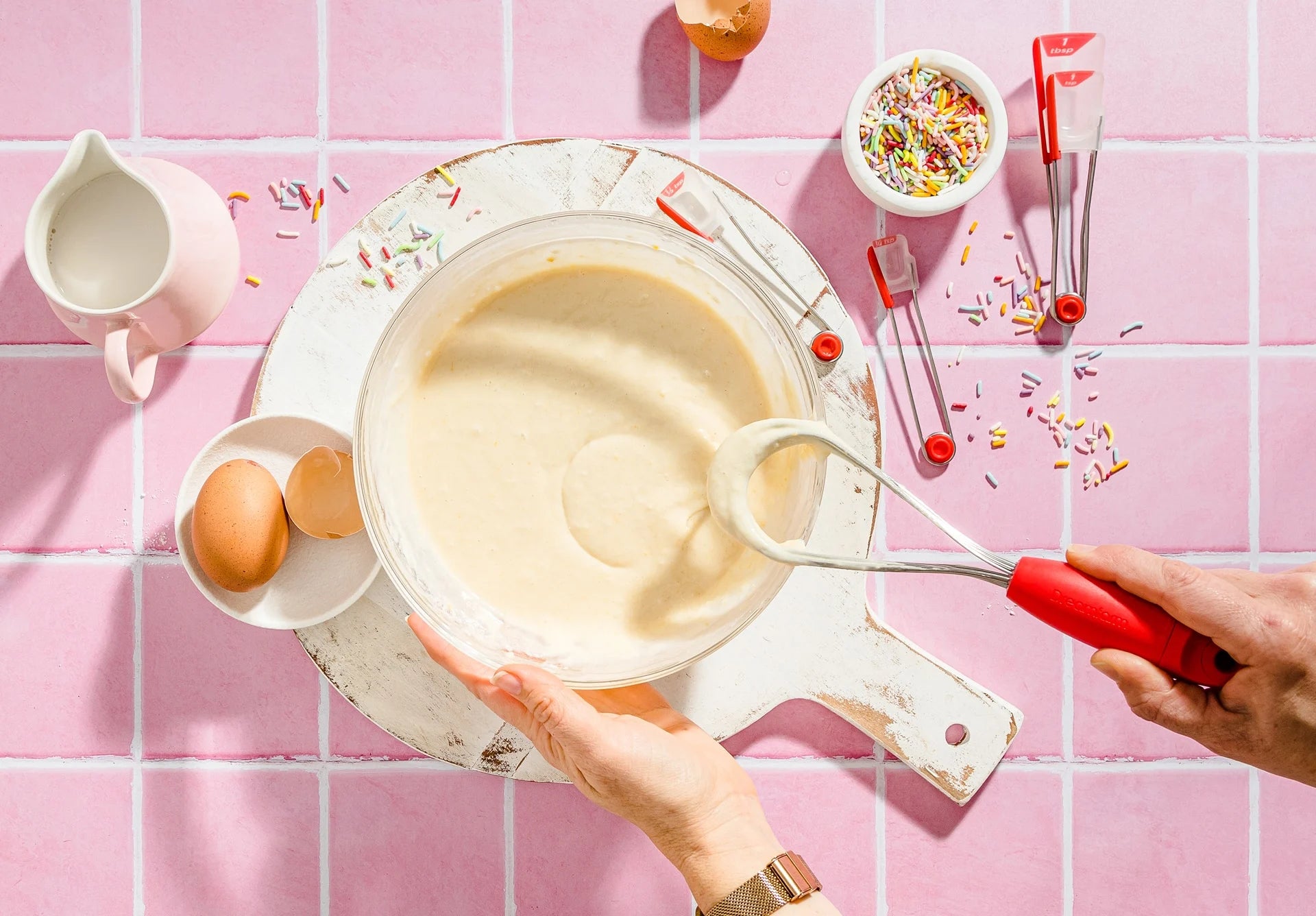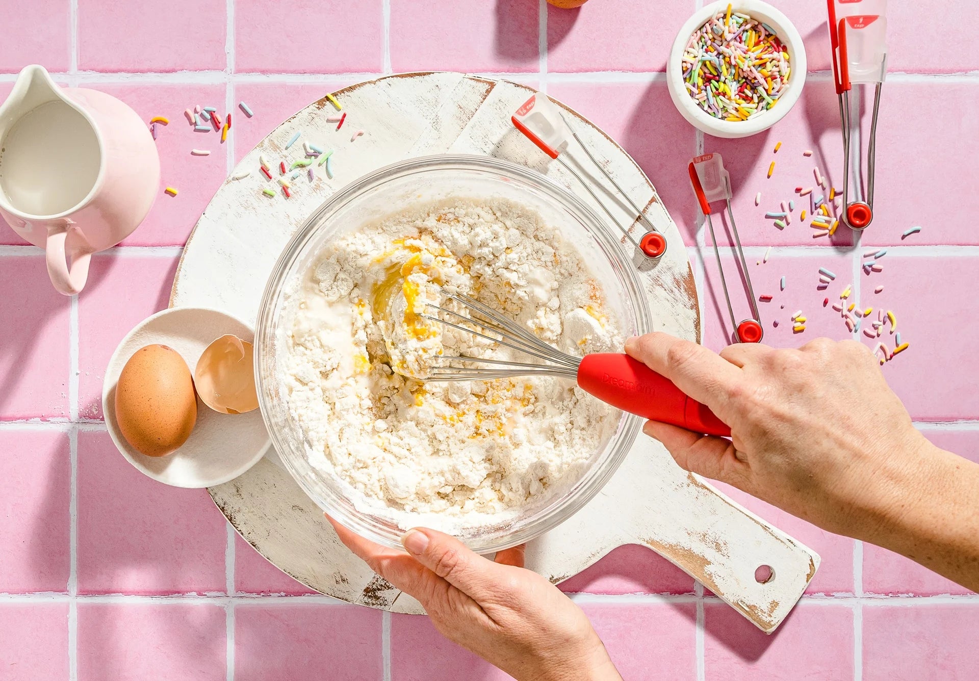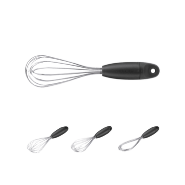 Mini Flisk is a whisk that twists to create 3 whisks from 1, from balloon to flat for easy cleaning.