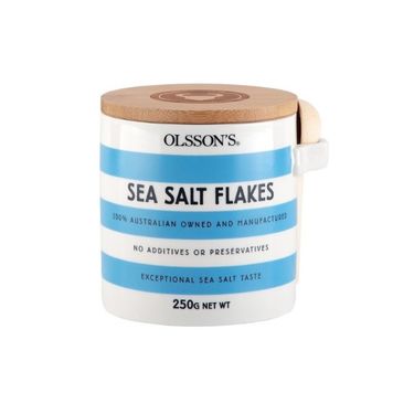 Olsson’s sea salt flakes, sourced from the Eyre Peninsula, South Australia, have a fresh flavour evocative of the pure ocean waters from which they are made. The salt is hand-harvested and retains many natural marine minerals.