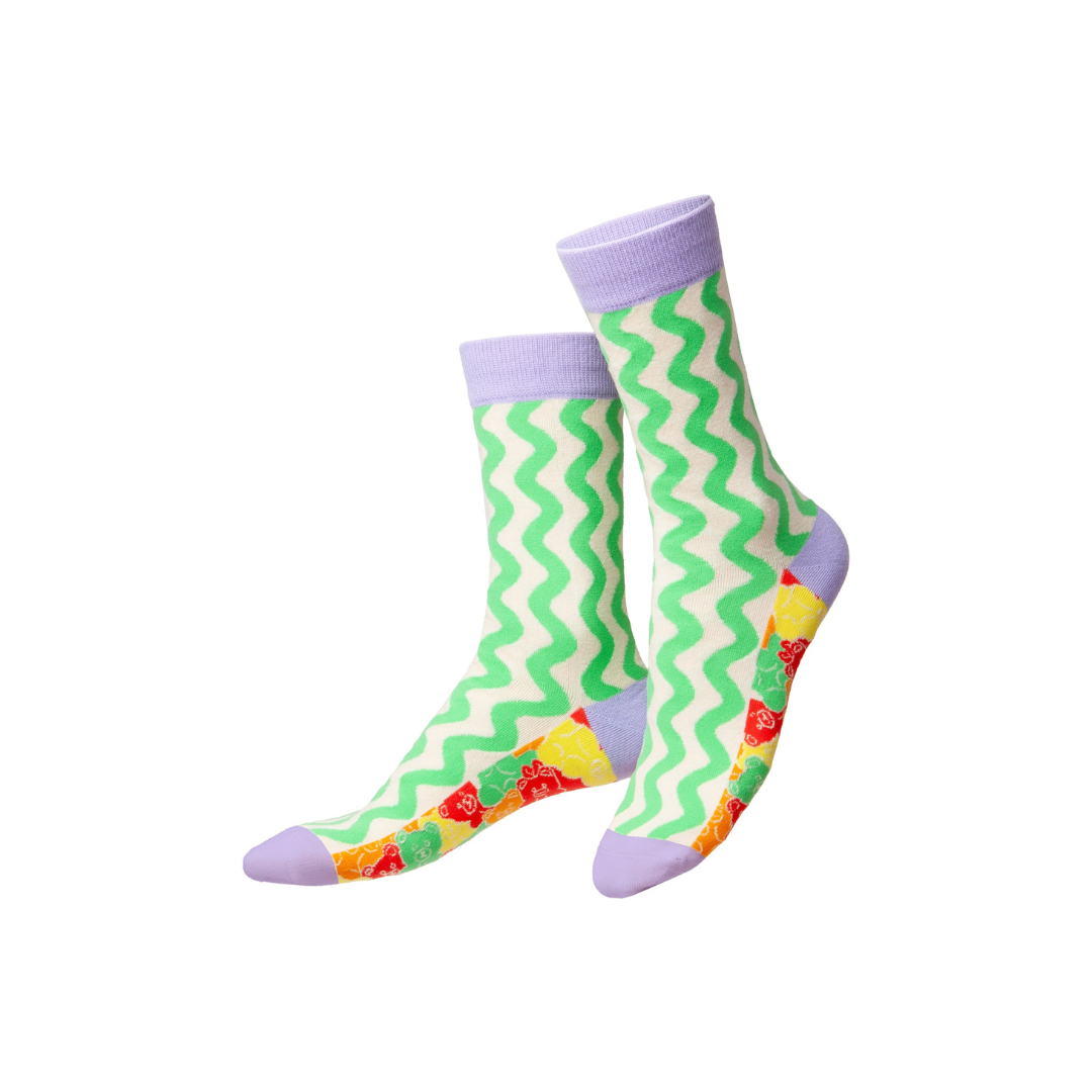 • Packed with playful charm and vibrant colors, these socks are as sweet as your favorite gummy treats.