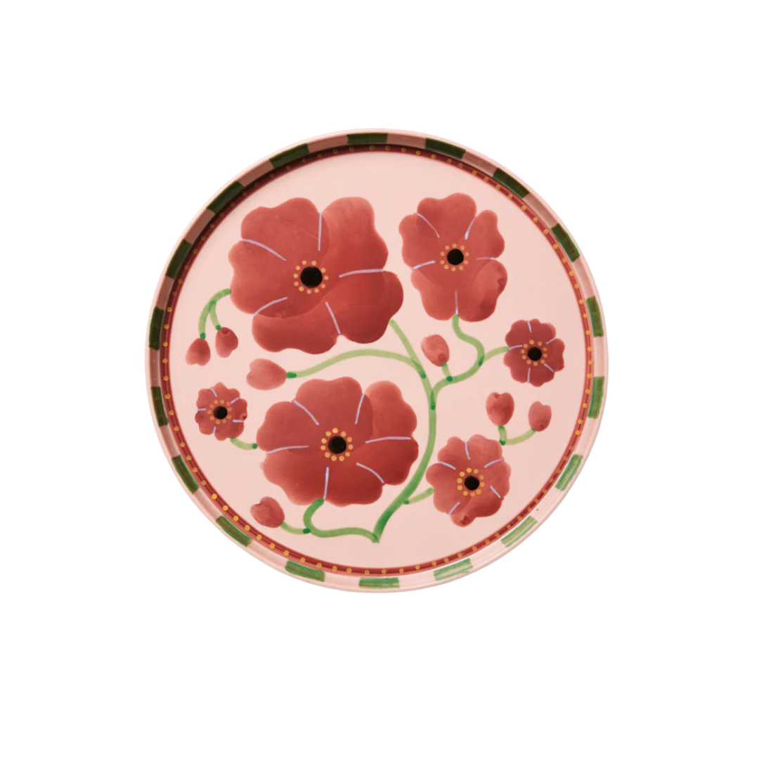 A serving piece with flower power. The Bloomie ceramic platter is a generous round platter handpainted with deep red blooms and botanical detail. A perfect partner for shared meals, cheese boards or sunny brunches.