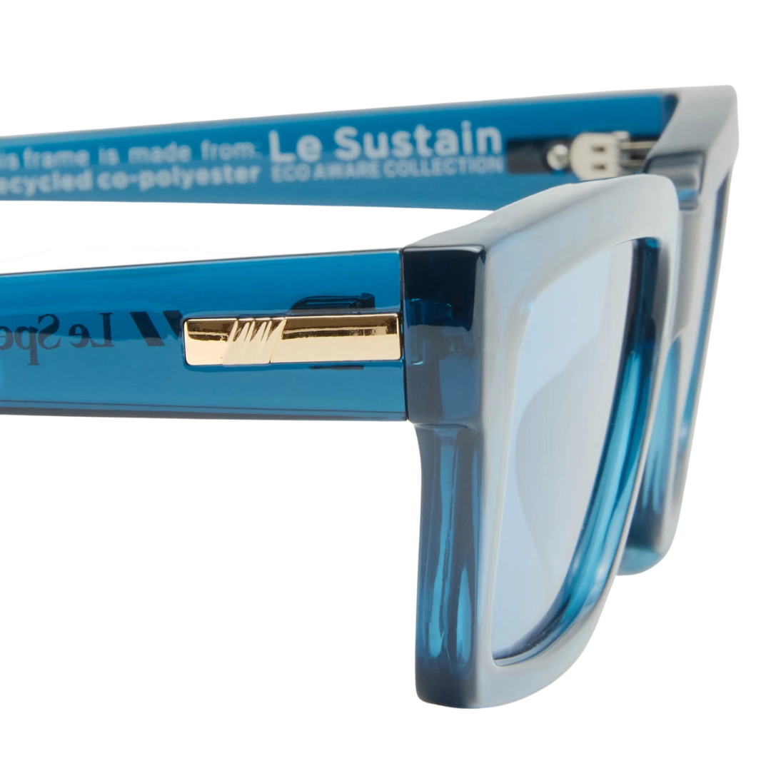 Each pair comes with a Le Specs spring-close protective pouch and a microfiber cleaning cloth, both featuring the debossed Le Specs logo.