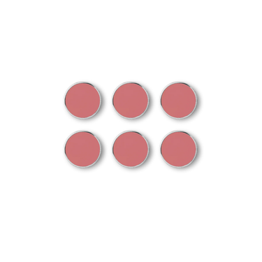 The Buttons have a lovely smooth flat surface bordered by a shiny silver edge. Their magnetic backs are made from neodymium, making them super strong! Packs of six are available in each of our 12 signature colours, so you can have fun mixing and matching.