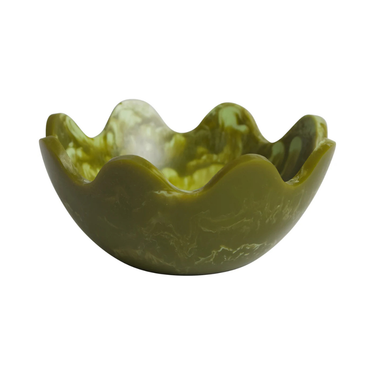 With a nod to mid-century design, this resin bowl fuses form and function via its wavy edges and smooth texture. A versatile companion for your everyday, it looks as good styled on a shelf as it does on the dining table. Crafted to hold what you love β good food, accessories or daily essentials. Poured and swirled by hand, every piece is entirely unique Made from food-grade materials for enduring quality and everyday practicality Designed to delight and crafted to last, the perfect gift for the ones you love Handwash with mild soap and warm water. Dry Immediately after use. Avoid prolonged soaking. Do not allow direct contact with hot foods. Not dishwasher or microwave safe. Food safe.