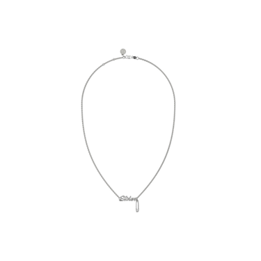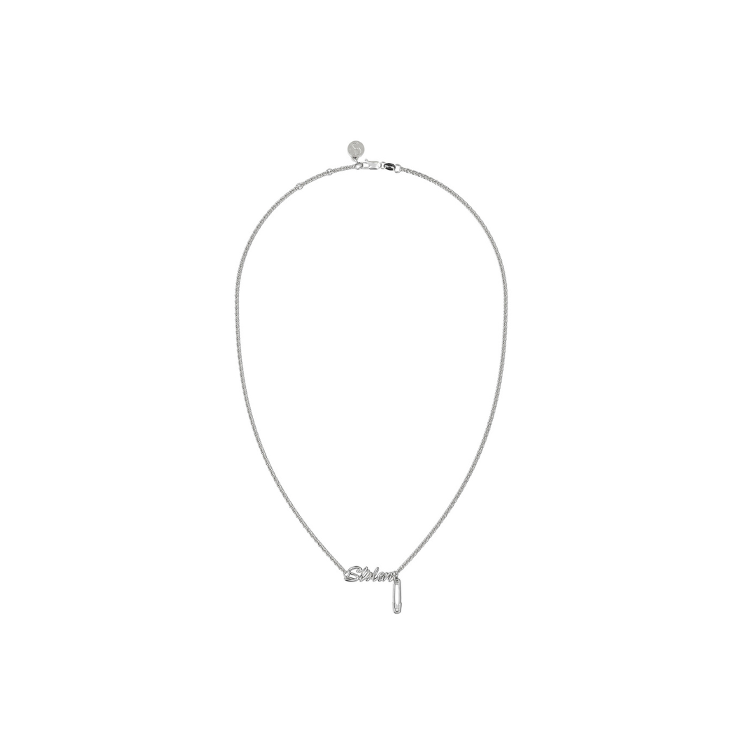 A contemporary reinterpretation of the signature ‘Stolen’ script, the Sentimental Script necklace by Stolen Girlfriends Club features a sculptural tubular pendant and refined cable chain. A contrasting safety pin detail adds a note of irreverence—merging classic craftsmanship with a distinctly modern attitude.