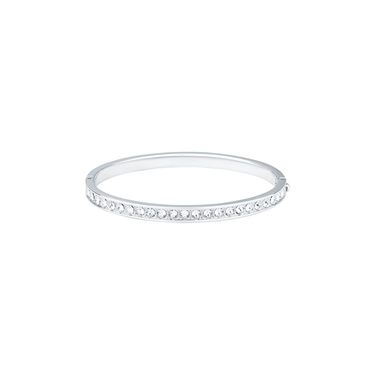 Featuring a row of crystals on one side and an engraved logo detail on the other, CLEMARA brings two elegant looks in one bracelet. This dainty bangle is a great piece for stacking or showcasing on its own, finished with an easy-to-use hinge closure.