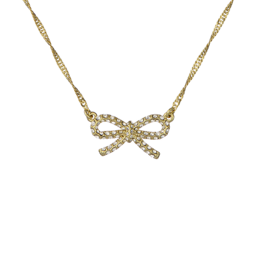 Lightweight and easy to wear, this necklace sits beautifully on its own or layered with other pieces. The bow motif adds a soft, romantic feel, making it perfect for everyday styling or gifting. Designed with a gold-tone plated finish, crystal detailing, and adjustable chain, it offers both versatility and timeless appeal.