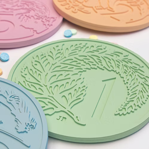 Our very popular retro coins are available to purchase in the ‘candy colours’ for a limited time only! They have been sprayed in a beautiful satin finish and the candy colours have been matched to the original lollies.