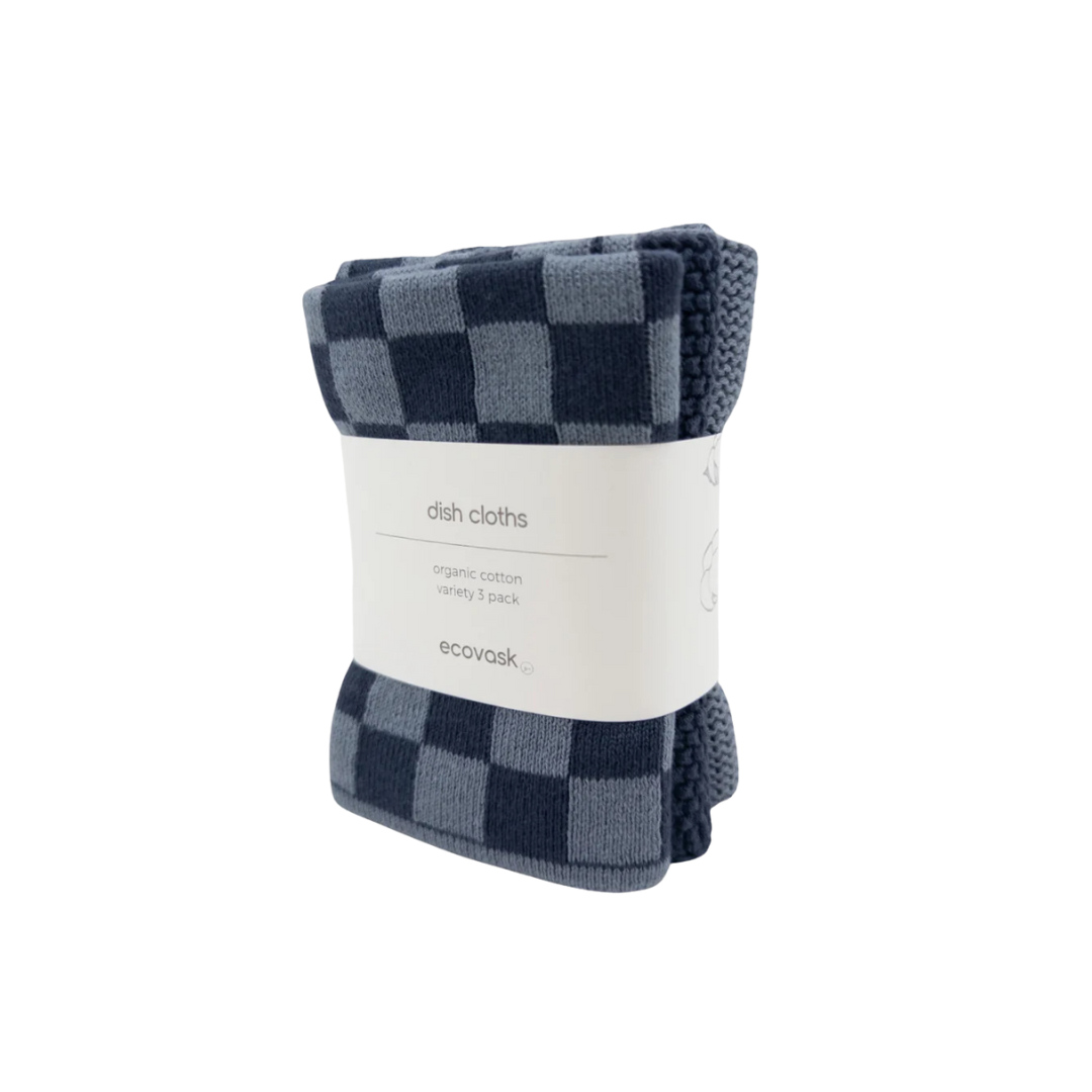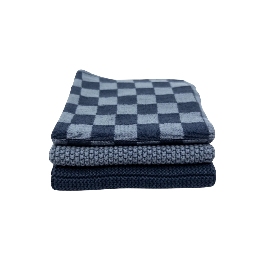 Dishcloth Variety 3pk - Navy Denim Chequer