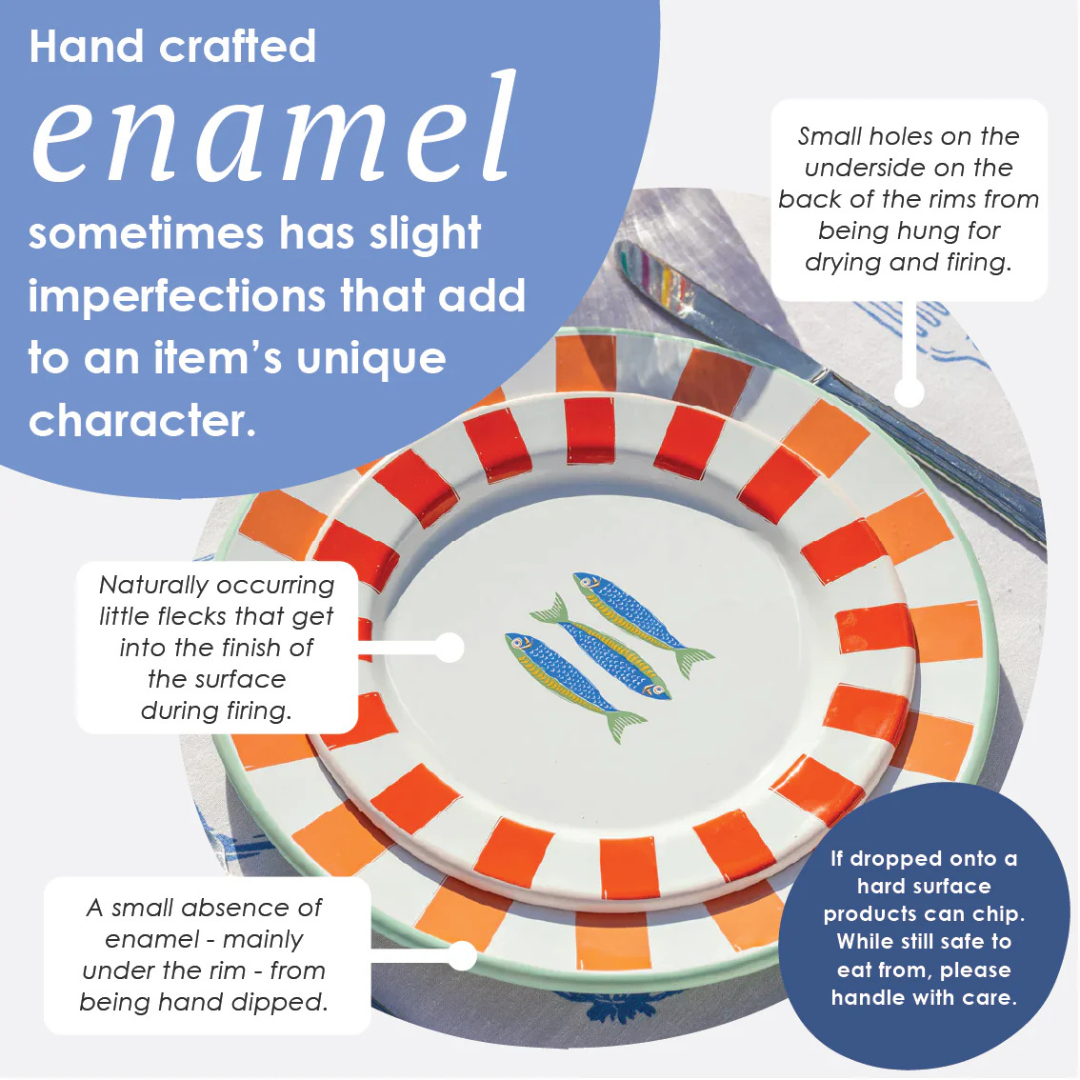 All the fun of our dinner size enamel fish plate, just in a slightly smaller version, our new enamelware from the Bon Appetit collection is durable, lightweight and has been hand finished and dipped multiple times to achieve its fresh and punchy colours. Perfect for a relaxed light lunch or brunch, and cheese and olives.