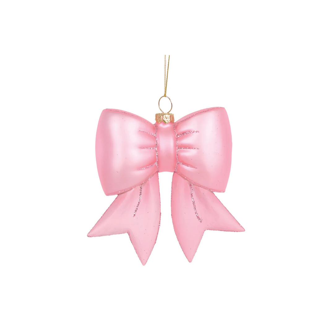 Add a touch of sweetness to your festive setup with this charming Glass Pink Bow Ornament. With its soft blush tone, subtle glitter detailing, and classic bow shape, it’s the perfect blend of elegant and playful - a must-have for any dopamine-decor Christmas tree.