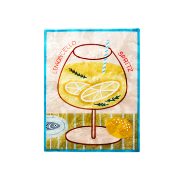 Zesty and bright, this Limoncello cocktail wall tile is a citrusy celebration of golden hour. Hand-painted on pearly capiz shell, it features slices of lemon, a striped straw, and that unmistakable spritz sparkle. A sunny sidekick for kitchens, bars or summer loving walls.
