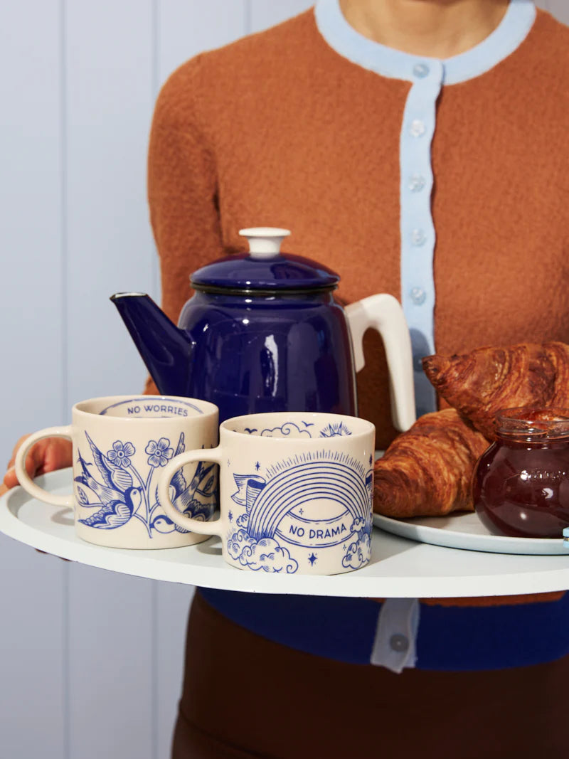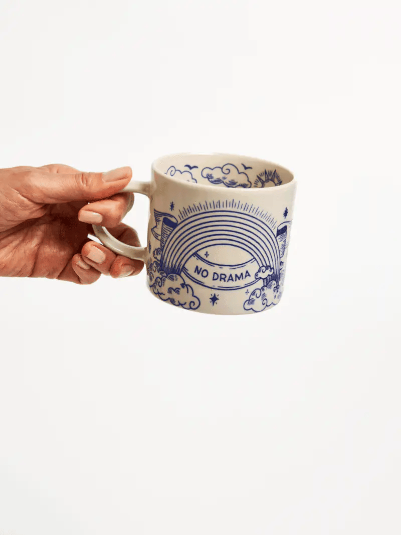 Take it easy with the Inked Mug No Drama, a playful nod to the ubiquitous Aussie saying "no dramas" Illustrated in classic blue ink, this handmade ceramic coffee mug is equal parts charming and practical. Perfect for your morning brew, it's a relaxed reminder to keep things simple. A thoughtful gift for coffee lovers and a daily dose of laid-back style.
