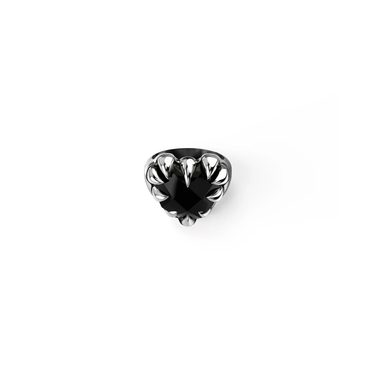 Sculptural in scale and unapologetic in presence, the Love Claw Cocktail Ring centres on a heart-cut black onyx nestled in our new claw setting. The deep faceting of the stone catches light with sharp contrast, while the band rises with a bold, domed profile.
