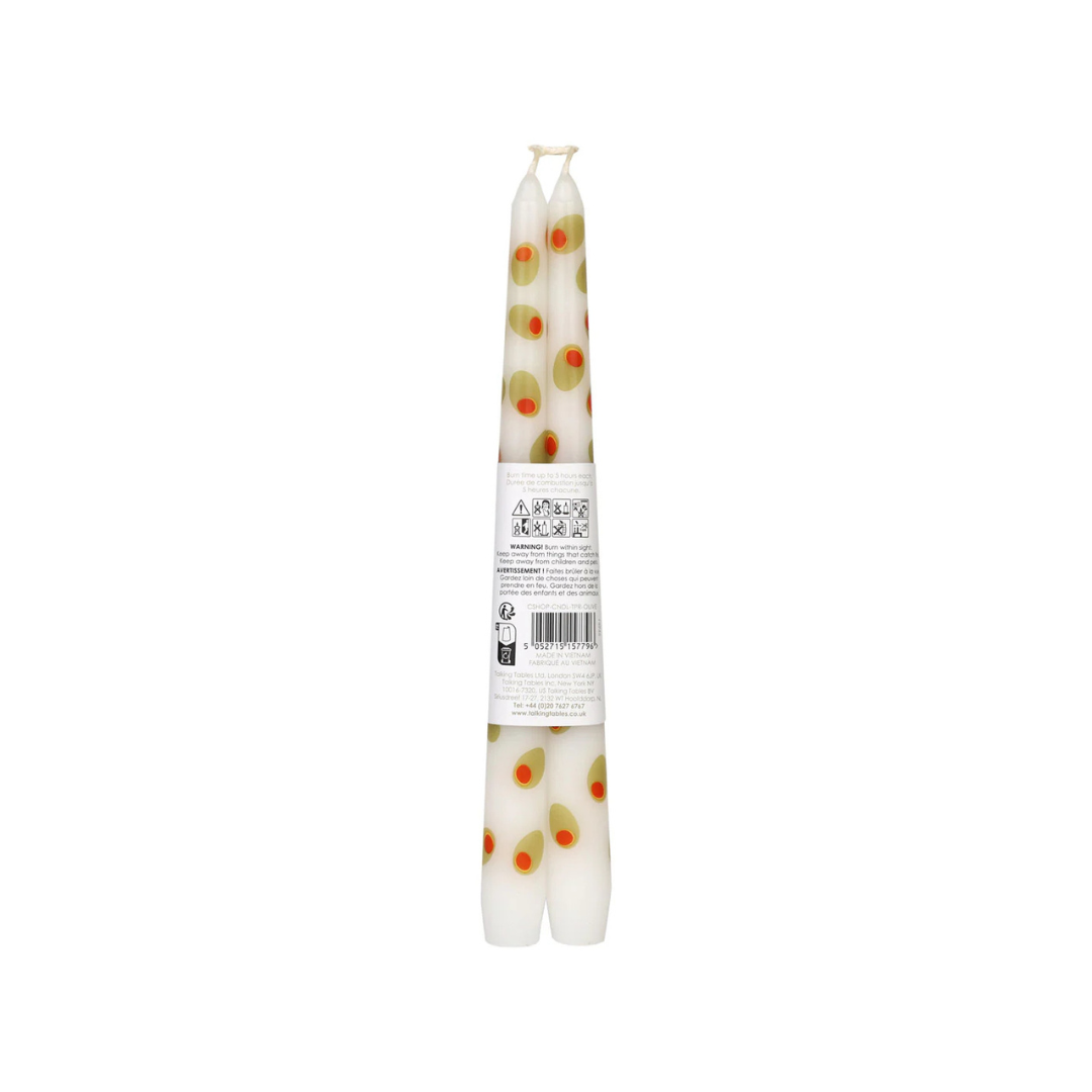 Our citrus and strawberry themed candles have been such a hit with you, we’ve added some new tasty additions. This two pack of candles come in a sleek, tapered shape and are decorated throughout with chilli stuffed olives. Just the thing for Mediterranean themed lunches.