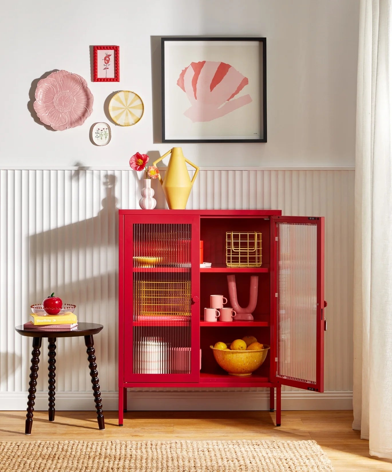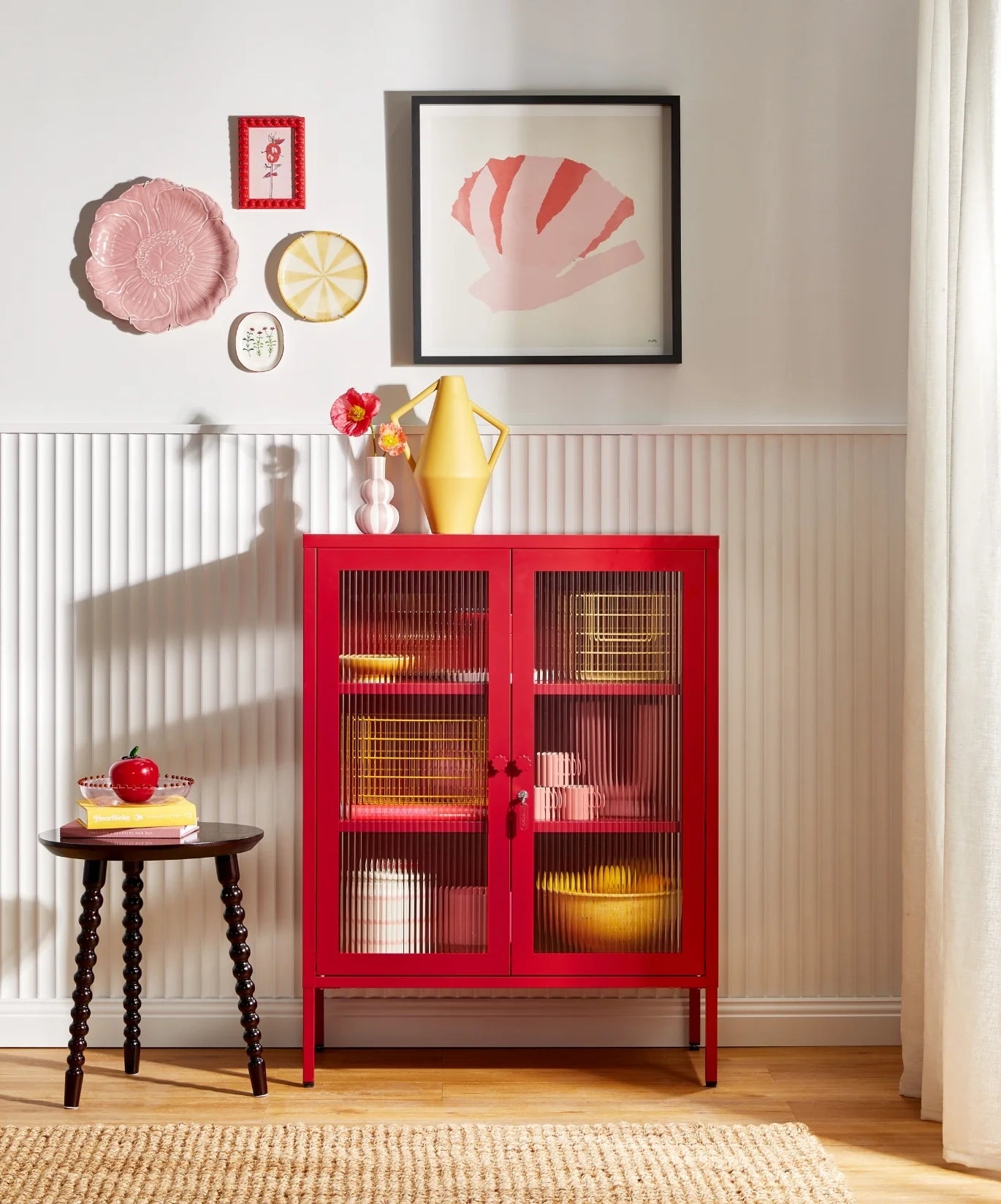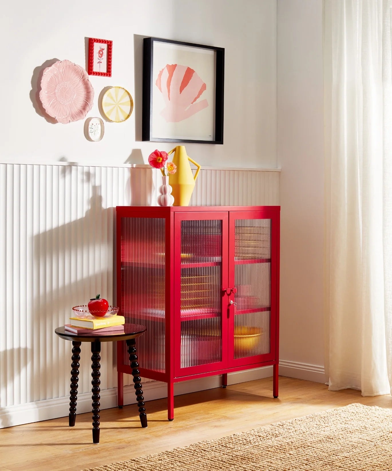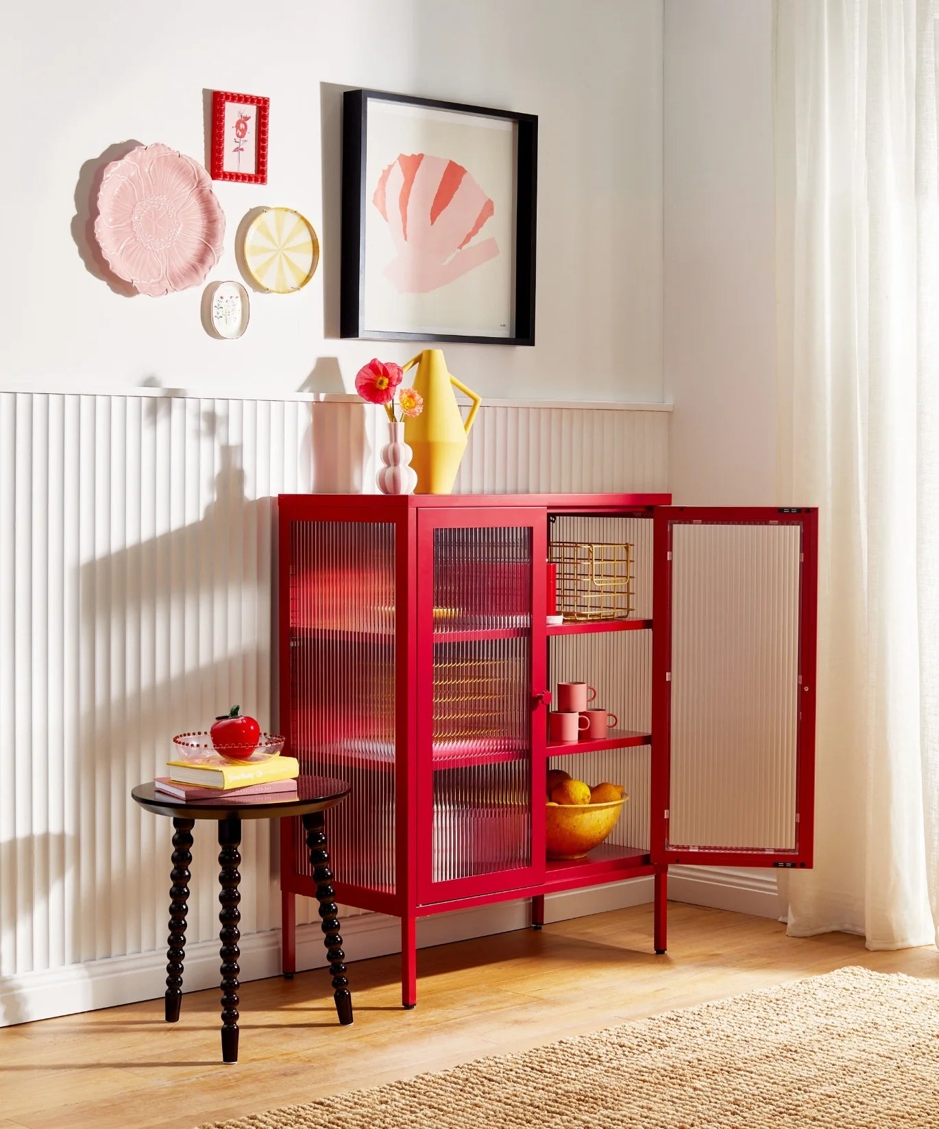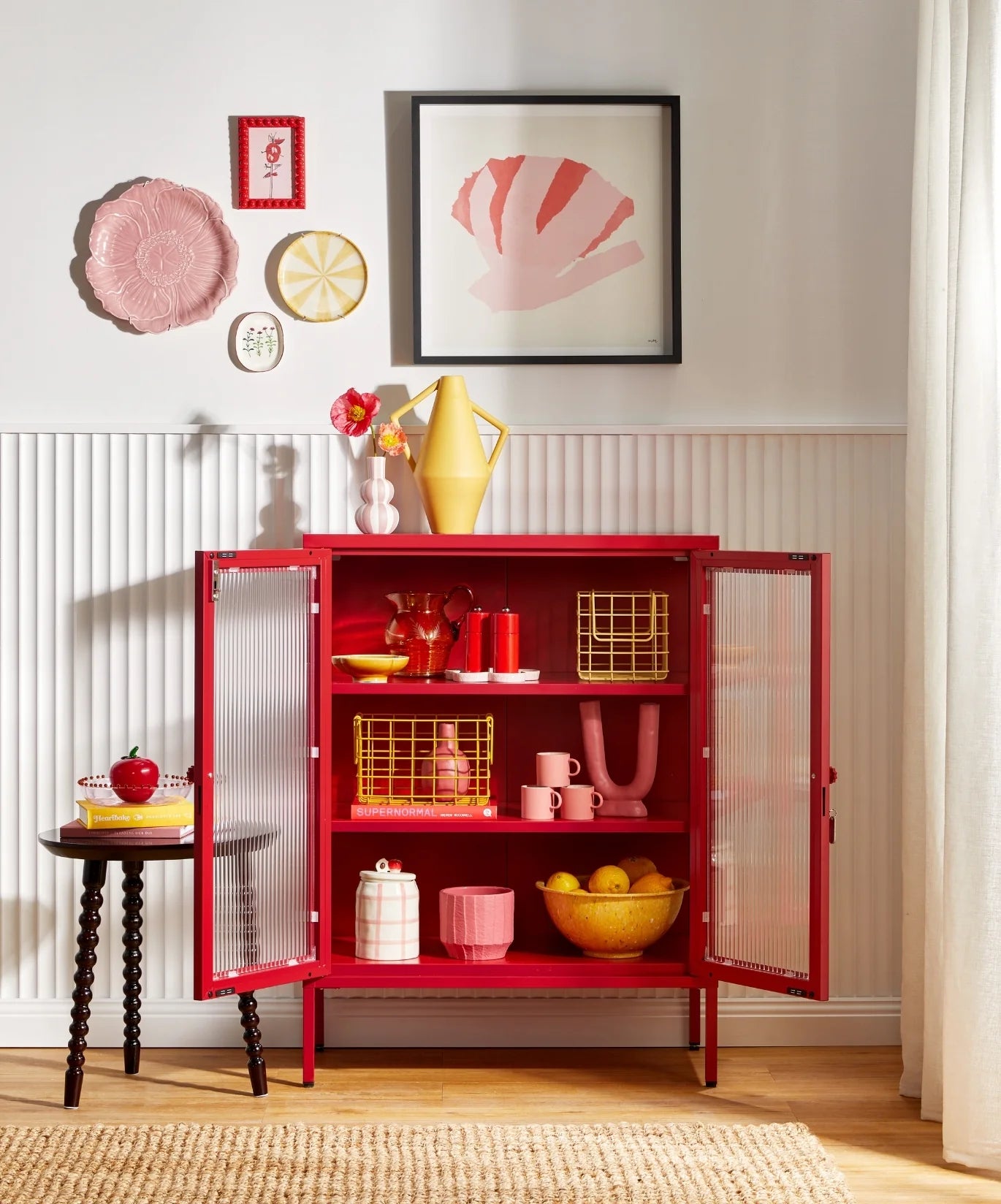 You can have nice things (and see them too!) When your favourite pieces are too beautiful to be hidden away, The Mixer is here to put them on display. She makes the perfect drinks cabinet, kitchen buffet or sideboard, with fluted glass to leave a little to the imagination. Medallion handles, a custom enamel keyring and adjustable feet make her the perfect mix of pretty and practical.