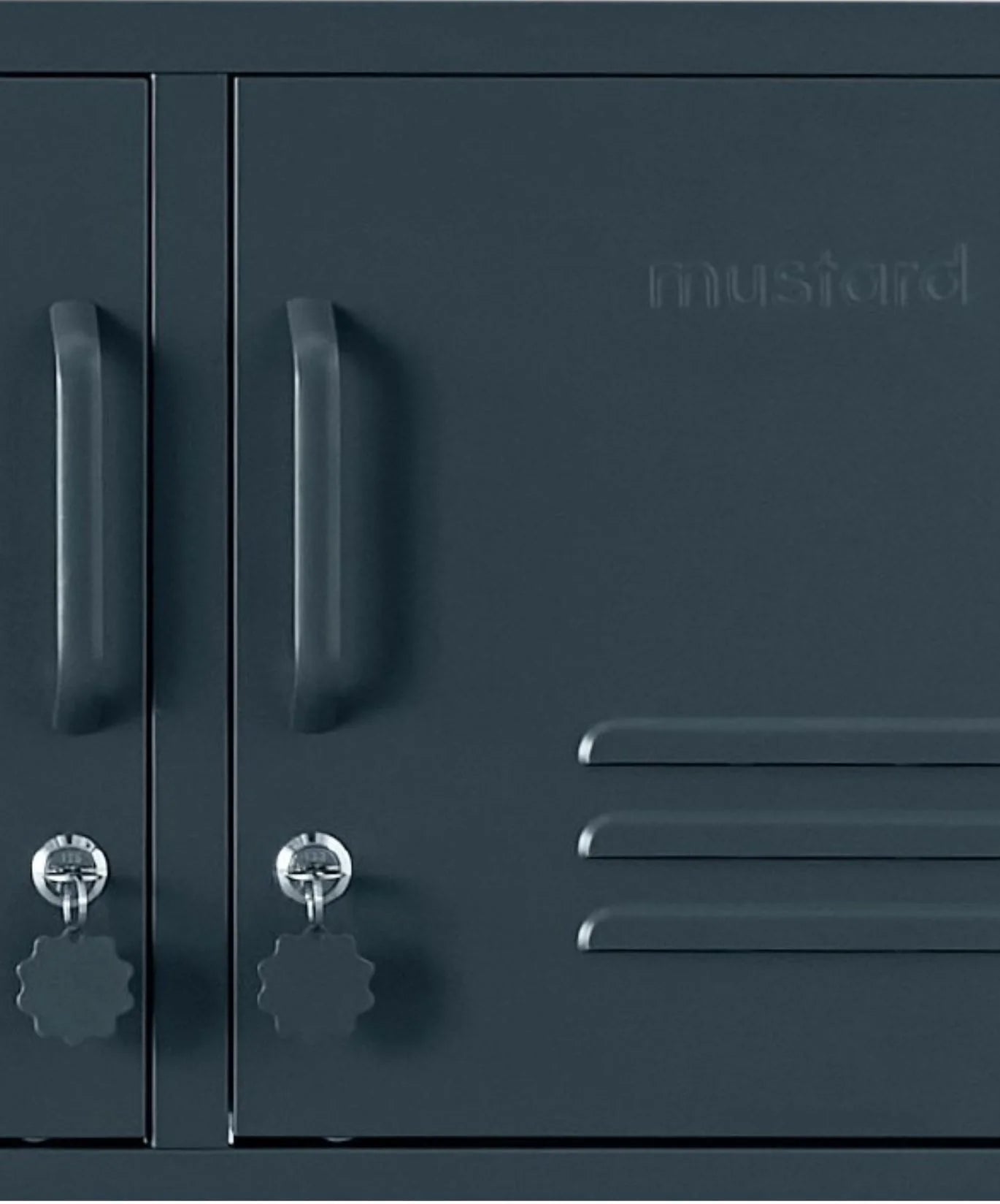 Handles, locks, custom keyrings, Mustard logo and air vents. Plus, the whole locker is smooth, matte and magnetic!