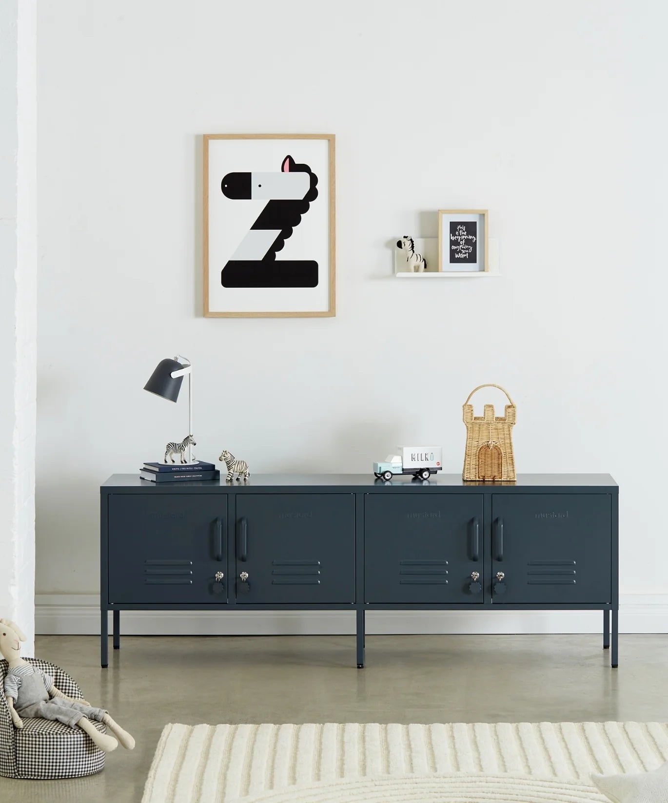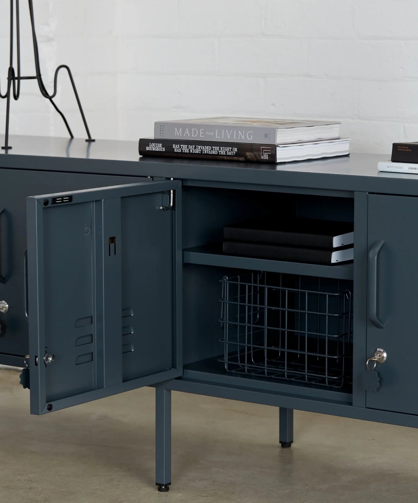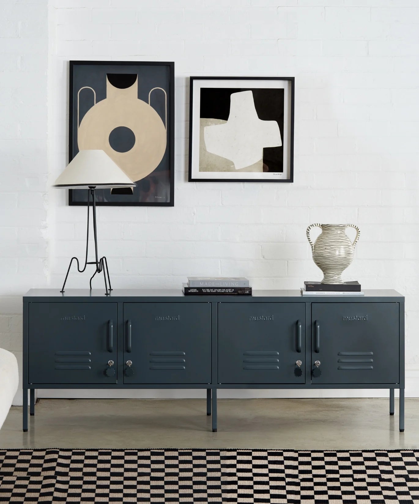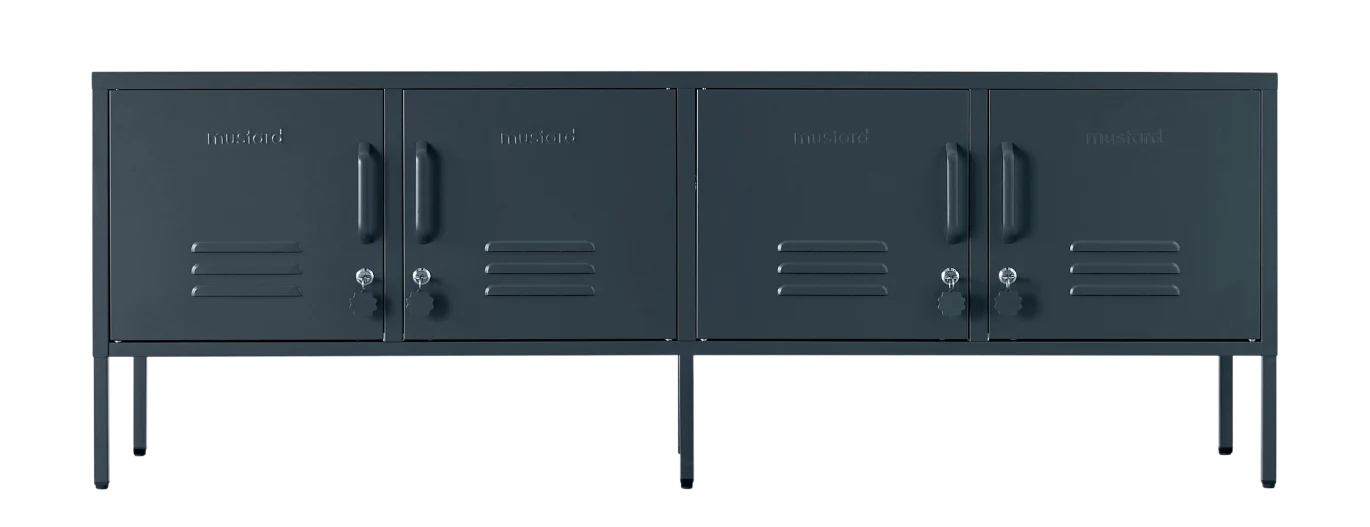 Meet our long + lean four door locker. She’s the ultimate multitasker and your one-stop for storage, whether you use her as a TV unit, entertainment hub, shoe organiser or at the foot of your bed. With two cable holes to keep things tidy and a lock on every door, she’s a console with confidence. It’s time to set the Standard!