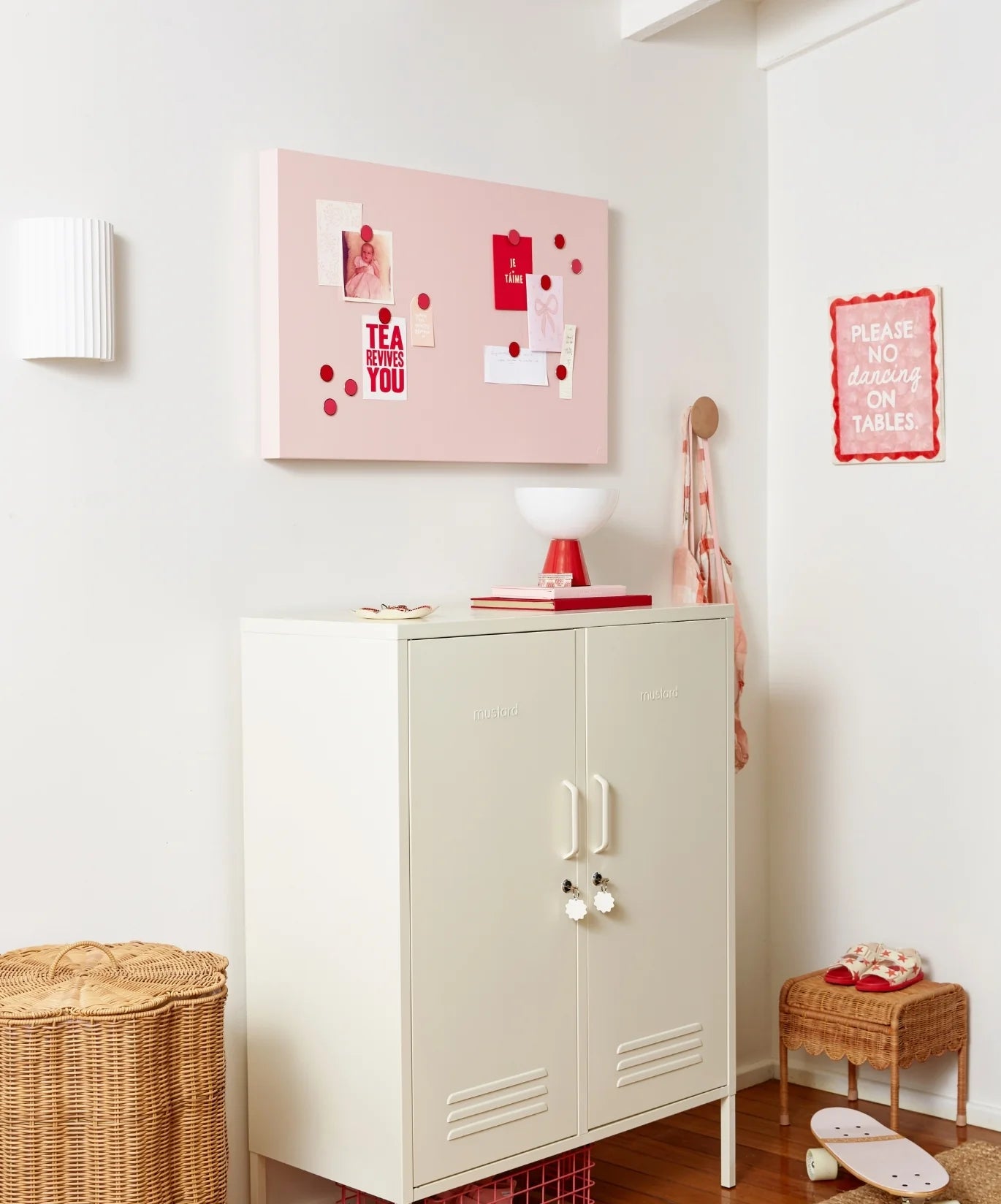The Storyboard's smooth, magnetic surface is made from the same powder-coated steel as our lockers. It can be hung portrait or landscape (like a piece of art!) and comes with our signature embossed Mustard medallion, to let you know it's the real deal. The best part? There's no assembly required!